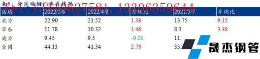 接下來再比較區(qū)域庫存的表現(xiàn)情況,從表1可以對(duì)比得出。目前北方、華東區(qū)域增庫較為明顯,分別高于同期9.15萬噸、3.48萬噸。主要是自3月份以來,北方、華東區(qū)域受疫情困擾,物流嚴(yán)重受阻,而無縫厚壁鋼管廠家產(chǎn)能利用率依舊保持高位,在產(chǎn)量不減的現(xiàn)狀下,而廠庫無法外移,導(dǎo)致廠庫持續(xù)累積。據(jù)了解,5月7日,營口市再次發(fā)布新冠肺炎疫情防控指揮部消息,結(jié)合當(dāng)前嚴(yán)峻的疫情形勢,營口市疫情防控指揮部決定提級(jí)管理,從即日起:實(shí)行全天24小時(shí)管制,交通信號(hào)燈全紅。解除時(shí)間另行通知,其他事項(xiàng)不變。這也就意味著北方區(qū)域的物流短期依舊受制。