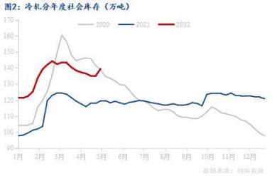 截止5月4日,監(jiān)測的26個(gè)城市庫存,冷軋板卷社會(huì)庫存為139.41萬噸。社會(huì)庫存雖未到達(dá)年內(nèi)的峰值,但也同樣處于相對(duì)高位。年同比增加19.97萬噸,同比數(shù)據(jù)同樣驚人。主要是汽車、家電等制造業(yè),在疫情下產(chǎn)量紛紛出現(xiàn)下滑,終端用鋼量明顯縮量。但短期局部區(qū)域物流受疫情防控影響,廠庫無法向社庫端去進(jìn)行轉(zhuǎn)移,因此社庫的累積速度并不及廠庫。