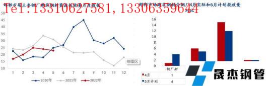 5月無縫厚壁鋼管廠家對京津冀區(qū)域投放量環(huán)比增加32.16萬噸,同比減少13.71萬噸。雖然無縫厚壁鋼管廠家生產(chǎn)成本高位,但產(chǎn)線復(fù)產(chǎn)的情況增加,具體來看:1、河鋼承鋼兩螺一線在產(chǎn),對京津冀投放量4月份22.5萬噸,5月份計劃22.5萬噸;2、河鋼樂鋼兩條螺紋產(chǎn)線在產(chǎn),4月唐山封城,資源主要對唐山本地投放,4月份合計13萬噸,5月份計劃投放13萬噸;3、敬業(yè)無縫厚壁鋼管廠家6條螺紋產(chǎn)線在產(chǎn),加上烏鋼資源流入,4月對京津冀投放量約43萬噸,5月計劃57.8萬噸;4、東華無縫厚壁鋼管廠家螺紋產(chǎn)線復(fù)產(chǎn),5月計劃投放10.19萬噸;5、鑫達(dá)一條螺紋產(chǎn)線不飽和生產(chǎn),4月京津冀僅投放6.5萬,5月份計劃投放10萬噸;6、4月建龍系無縫厚壁鋼管廠家對京津市場投放13.4萬噸左右,5月份計劃16萬噸左右,其中新?lián)徜撟疃唷?/p>
