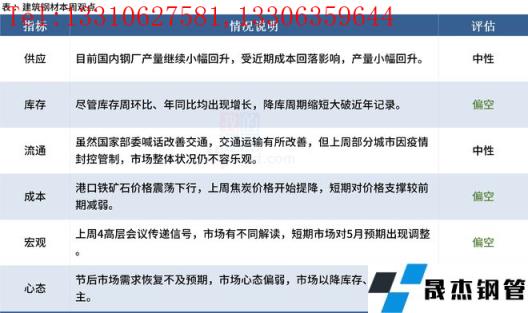 總體來看,市場受到了多重因素擾動,預(yù)期出現(xiàn)調(diào)整。此外,各地疫情反復(fù)發(fā)生對市場需求產(chǎn)生持續(xù)性影響,致使各地停工和復(fù)工交替發(fā)生,需求表現(xiàn)較差,市場缺少有效支撐。本周,市場博弈加強(qiáng),在新的利好消息或者供需調(diào)整完成前,鋼價將延續(xù)承壓下行趨勢。