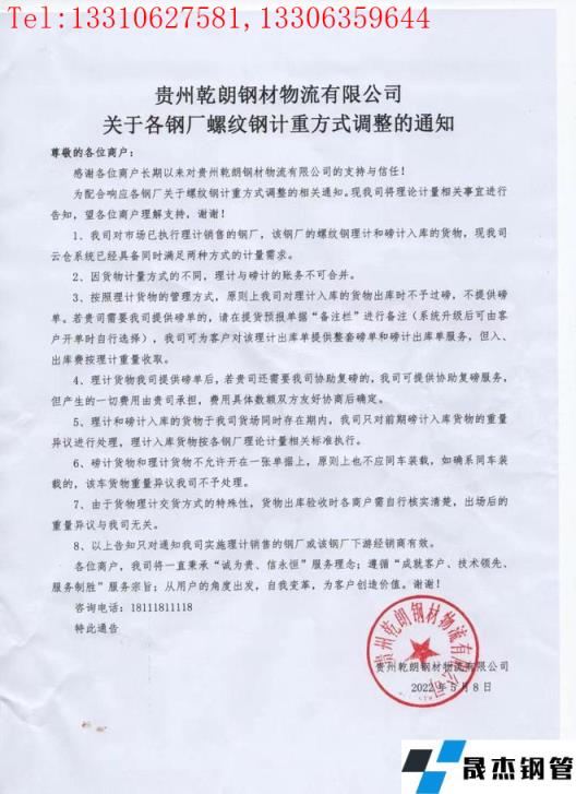 免責(zé)聲明:本網(wǎng)站(山東聊城晟杰無縫鋼管廠www.frdimp.com)刊載的“貴州乾朗鋼材_無縫鋼管物流有限公司關(guān)于各無縫鋼管廠家螺紋鋼計(jì)重方式調(diào)整的通知”等均源于網(wǎng)絡(luò),版權(quán)歸原作者所有,且僅代表原作者觀點(diǎn),本文所載信息僅供參考。轉(zhuǎn)載僅為學(xué)習(xí)與交流之目的,如無意中侵犯您的合法權(quán)益,請及時聯(lián)系刪除。本網(wǎng)站刊登此篇文章并不意味著本站贊同其觀點(diǎn)或證實(shí)其內(nèi)容的真實(shí)性,我們不對其科學(xué)性、嚴(yán)肅性等作任何形式的保證。如果侵犯了您的版權(quán),請盡快聯(lián)系我們予以撤銷,謝謝合作!