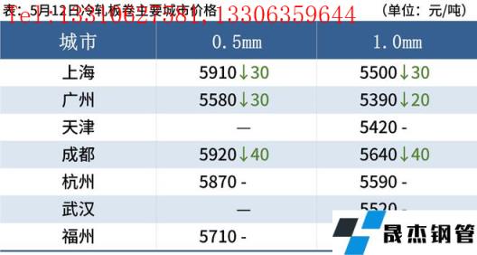冷軋板卷:5月12日,全國24個主要城市1.0mm冷卷均價5569元/噸,較上個交易日下跌7元/噸。今日黑色系期貨盤面呈高開低走,現(xiàn)貨市場報價混亂,部分商家報價以穩(wěn)為主,今日成交表現(xiàn)偏差。心態(tài)方面,南方近期進(jìn)入汛期,市場需求或?qū)⒂兴鶞?,商家心態(tài)多謹(jǐn)慎,當(dāng)下操作以出貨成交為主。庫存方面,據(jù)不完全統(tǒng)計,本周冷軋無縫厚壁鋼管廠家?guī)齑?3.05萬噸,周環(huán)比減少1.08萬噸,社會庫存136.81萬噸,周環(huán)比減少2.60萬噸,周消費(fèi)量83.81萬噸,環(huán)比增加0.50萬噸。綜合來看,故預(yù)計13日國內(nèi)冷軋板卷價格或?qū)⒄鹗幤踹\(yùn)行。
