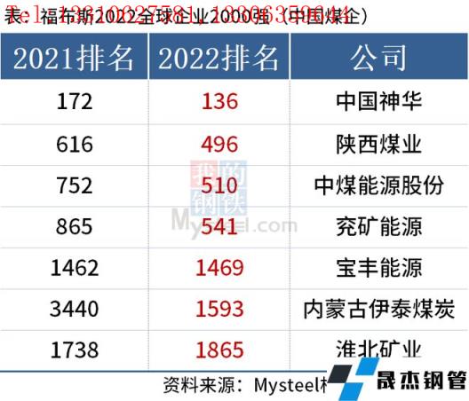 免責(zé)聲明:本網(wǎng)站(山東聊城晟杰無(wú)縫鋼管廠www.frdimp.com)刊載的“中國(guó)7家煤企上榜福布斯2022全球企業(yè)2000強(qiáng)”等均源于網(wǎng)絡(luò),版權(quán)歸原作者所有,且僅代表原作者觀點(diǎn),本文所載信息僅供參考。轉(zhuǎn)載僅為學(xué)習(xí)與交流之目的,如無(wú)意中侵犯您的合法權(quán)益,請(qǐng)及時(shí)聯(lián)系刪除。本網(wǎng)站刊登此篇文章并不意味著本站贊同其觀點(diǎn)或證實(shí)其內(nèi)容的真實(shí)性,我們不對(duì)其科學(xué)性、嚴(yán)肅性等作任何形式的保證。如果侵犯了您的版權(quán),請(qǐng)盡快聯(lián)系我們予以撤銷,謝謝合作!