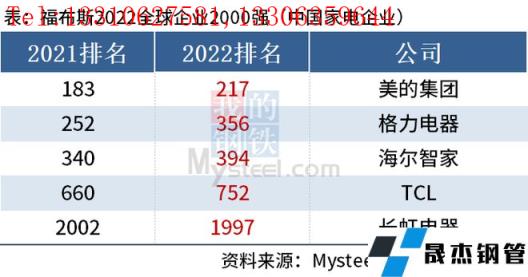 免責(zé)聲明:本網(wǎng)站(山東聊城晟杰無縫鋼管廠www.frdimp.com)刊載的“中國5家家電企業(yè)上榜福布斯2022全球企業(yè)2000強”等均源于網(wǎng)絡(luò),版權(quán)歸原作者所有,且僅代表原作者觀點,本文所載信息僅供參考。轉(zhuǎn)載僅為學(xué)習(xí)與交流之目的,如無意中侵犯您的合法權(quán)益,請及時聯(lián)系刪除。本網(wǎng)站刊登此篇文章并不意味著本站贊同其觀點或證實其內(nèi)容的真實性,我們不對其科學(xué)性、嚴(yán)肅性等作任何形式的保證。如果侵犯了您的版權(quán),請盡快聯(lián)系我們予以撤銷,謝謝合作!
