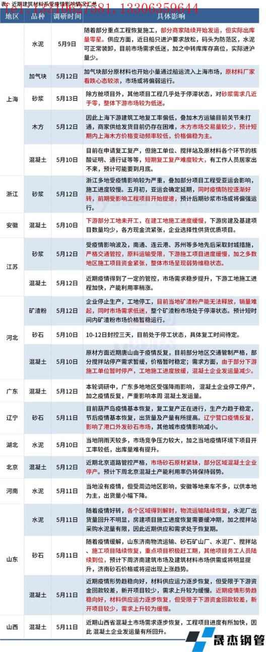 截至5月13日,據百年建筑網調研,12個省份建材市場受到了不同程度的影響。近期上海目前對全市建筑工地開展階梯式分類管理,重點聚焦涉疫工地,完善各項疫情防控措施,盡快實現建筑工地社會面清零,為建筑工地全面復工復產奠定基礎。加之近期華南地區(qū)雨水天氣來臨,運輸和終端施工進度受限,因此建材行情弱勢運行。待全國疫情和汛期有所好轉,公路、高速等基建項目支撐起一定需求,部分材料的發(fā)運量會有所提升。具體情況如下: