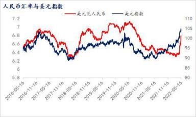 2022年3月,美聯(lián)儲宣布將基準(zhǔn)利率上調(diào)25個基點(diǎn),正式進(jìn)入加息周期,5月更是宣布一次性加息50個基點(diǎn),引起了全球資本市場的動蕩,而美元作為全球避險(xiǎn)資產(chǎn),在此輪加息過程中不斷走強(qiáng),截至目前美元指數(shù)年內(nèi)漲幅高達(dá)8.57%。相比來看,從今年4月中旬開始,人民幣匯率卻出現(xiàn)連續(xù)大貶值的走勢,其中人民幣離岸匯率從4月18日的6.372快速貶至5月16日的6.79,幅度達(dá)到6.3%,在岸匯率同期從6.363貶至5月12日的6.7994,幅度達(dá)到6.86%。同期歐元貶值8.2%,日元貶值12.88%,韓幣貶值7.93%,而盧布年初至今對美元升值1.8%,澳元對美元微貶2.4%。從匯率上也可以看出,在全球通脹及美元走強(qiáng)背景下,能源原料出口國如俄羅斯、澳大利亞等國匯率相對堅(jiān)挺,而產(chǎn)成品出口國如中國、日本、韓國等面臨較大貶值壓力。