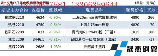 ◎5月17日唐山個別無縫厚壁鋼管廠家晚8點(diǎn)起執(zhí)行焦炭價格下調(diào)200元/噸,降后準(zhǔn)一級焦炭現(xiàn)匯到廠含稅價3260-3310元/噸。