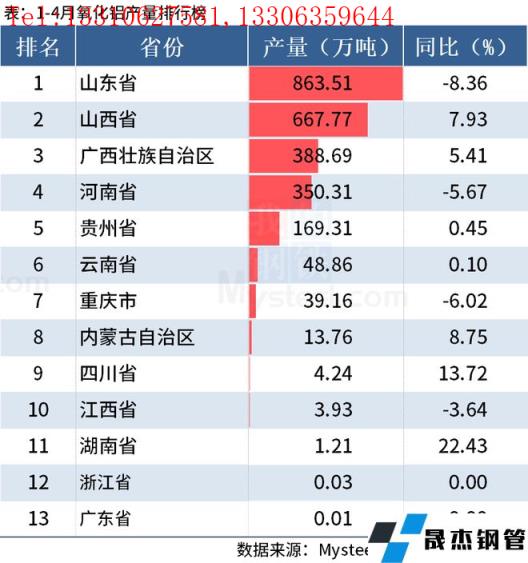 免責(zé)聲明:本網(wǎng)站(山東聊城晟杰無縫鋼管廠www.frdimp.com)刊載的“統(tǒng)計(jì)局:前4月全國(guó)分省市鋁材、氧化鋁產(chǎn)量出爐”等均源于網(wǎng)絡(luò),版權(quán)歸原作者所有,且僅代表原作者觀點(diǎn),本文所載信息僅供參考。轉(zhuǎn)載僅為學(xué)習(xí)與交流之目的,如無意中侵犯您的合法權(quán)益,請(qǐng)及時(shí)聯(lián)系刪除。本網(wǎng)站刊登此篇文章并不意味著本站贊同其觀點(diǎn)或證實(shí)其內(nèi)容的真實(shí)性,我們不對(duì)其科學(xué)性、嚴(yán)肅性等作任何形式的保證。如果侵犯了您的版權(quán),請(qǐng)盡快聯(lián)系我們予以撤銷,謝謝合作!