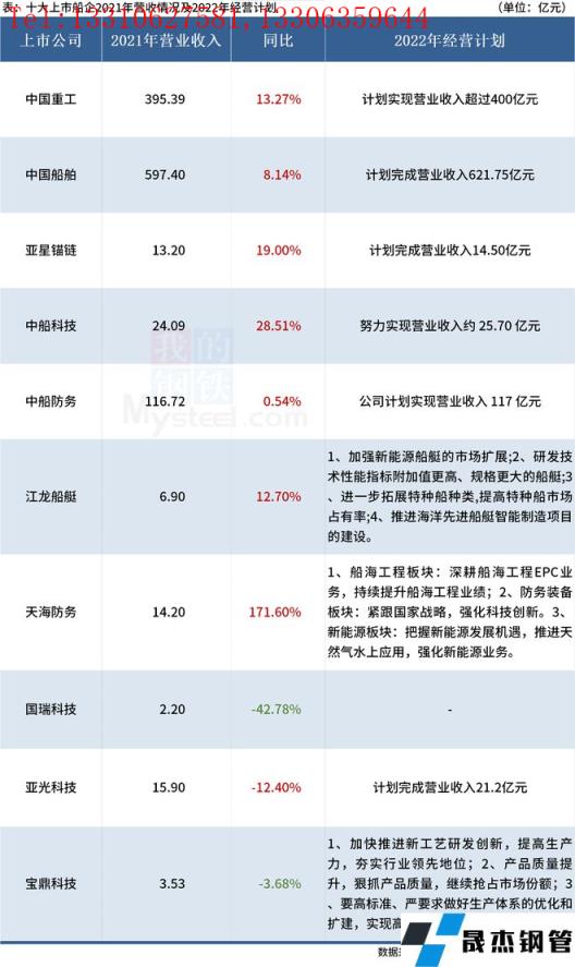 10大上市船企2022年經(jīng)營(yíng)計(jì)劃以及2021年船舶類業(yè)務(wù)完成具體情況如下: