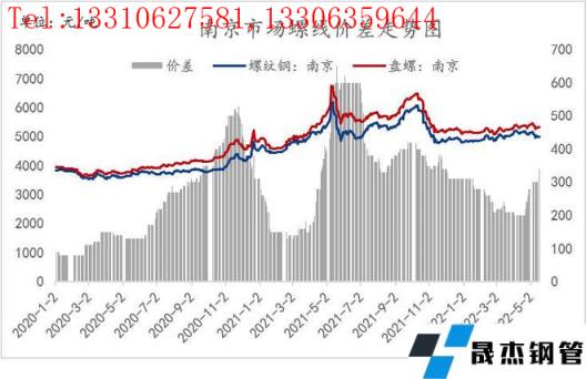 蘇錫常市場(chǎng)螺紋鋼與盤螺的價(jià)差已經(jīng)擴(kuò)大至400元/噸左右,比年后200元/噸的正常價(jià)格已經(jīng)擴(kuò)大一倍,也是近幾年的高點(diǎn)。以永鋼為例今日螺紋無(wú)縫厚壁鋼管廠家提價(jià)已經(jīng)跌至4800元/噸的水平,但盤螺廠提主流價(jià)在5200元/噸左右,各城市庫(kù)提價(jià)格還需加價(jià)20-30元/噸,另外新三洲抗震螺紋鋼今天蘇州庫(kù)提報(bào)價(jià)4750元/噸,而抗震盤螺報(bào)價(jià)5150元/噸,價(jià)差也為擴(kuò)至400元/噸。貿(mào)易商反饋當(dāng)前盤螺資源較少,特別是沙永中資源更加稀缺,不少代理商已經(jīng)沒(méi)有盤螺計(jì)劃,因此報(bào)價(jià)高也十分正常,而且按照目前的市場(chǎng)情況盤螺價(jià)格會(huì)繼續(xù)堅(jiān)挺,而螺紋目前在期貨下跌,低價(jià)資源的沖擊下仍會(huì)繼續(xù)下跌,這導(dǎo)致螺紋鋼與盤螺的價(jià)差仍有繼續(xù)擴(kuò)大的趨勢(shì)。