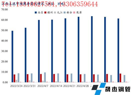 分品種來看,以南昌市場為例,本周南昌市場建筑厚壁無縫鋼管總庫存為61.39萬噸,其中螺紋鋼庫存為49.26萬噸,周環(huán)比減少0.62萬噸,降幅為1.24%;高線庫存為0.77萬噸,周環(huán)比增加0.27萬噸,增幅為54.0%;盤螺庫存為11.36萬噸,周環(huán)比減少1.18噸,降幅為9.41%。從資源占比來看,螺紋鋼資源占比80.23%,線盤資源占比19.77%,螺紋鋼占比較上周基本持平。