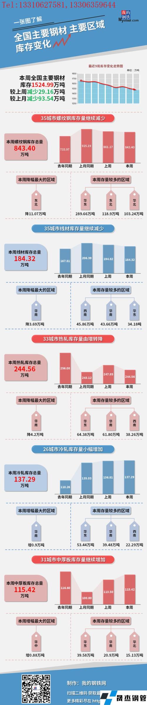 本周,全國(guó)主要厚壁無(wú)縫鋼管社會(huì)庫(kù)存1524.99萬(wàn)噸,較上周減少29.16萬(wàn)噸,較上月減少93.54萬(wàn)噸;螺紋鋼庫(kù)存總量843.4萬(wàn)噸。