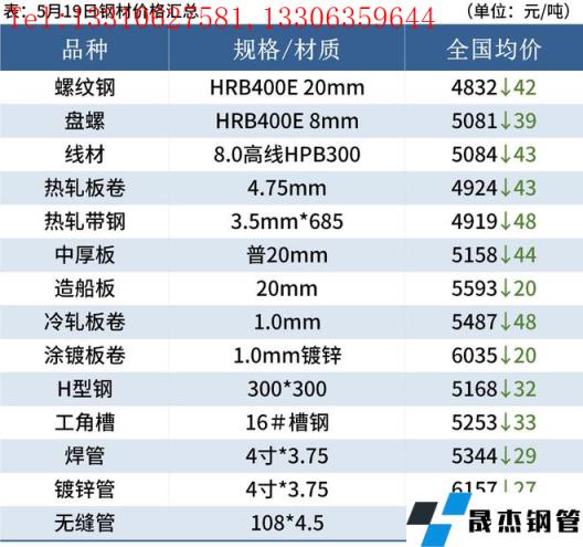 建筑厚壁無縫鋼管:5月19日,全國31個主要城市20mm三級抗震螺紋鋼均價4832元/噸,較上個交易日下跌42元/噸。本周由于無縫厚壁鋼管廠家虧損減產(chǎn),螺紋鋼產(chǎn)量小幅下降,廠庫繼續(xù)上升,社庫繼續(xù)下降,同時表觀消費小幅下滑。短期來看,目前市場基本面依然偏弱,但由于價格持續(xù)下跌已經(jīng)導(dǎo)致部分區(qū)域無縫厚壁鋼管廠家出現(xiàn)減產(chǎn)、停產(chǎn)情況,供給仍然維持低位。隨著疫情逐漸緩解,厚壁無縫鋼管消費端有望逐漸恢復(fù),鋼價整體下行空間有限。因此預(yù)計20日國內(nèi)建筑厚壁無縫鋼管價格或?qū)⒄鹗帪橹鳌?/p>