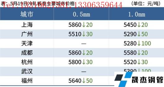 冷軋板卷:5月19日,全國24個主要城市1.0mm冷卷均價5487元/噸,較上個交易日下跌48元/噸。貿(mào)易商心態(tài)較為悲觀,市場報價混亂,多為暗降出貨,下游采購企業(yè)仍以按需采購為主,需求持續(xù)疲軟。庫存方面,據(jù)不完全統(tǒng)計,本周冷軋無縫厚壁鋼管廠家?guī)齑?4.14萬噸,周環(huán)比增加1.09萬噸;社會庫存137.29萬噸,周環(huán)比增加0.48萬噸。綜合來看,故預(yù)計20日國內(nèi)冷軋板卷價格或?qū)⑵踹\行。