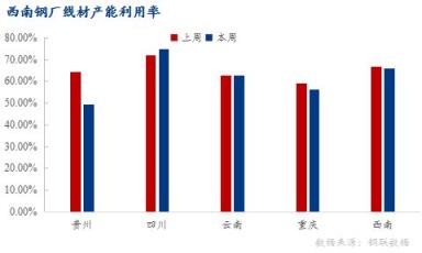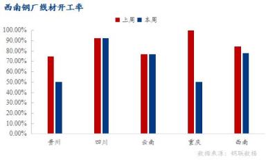 貴州區(qū)域:個別無縫厚壁鋼管廠家停產(chǎn),產(chǎn)量小幅下降,線材產(chǎn)能利用率49.25%,環(huán)比下降14.99%;開工率50%,環(huán)比下降25%;周產(chǎn)量2.3萬噸,環(huán)比減少0.7萬噸。