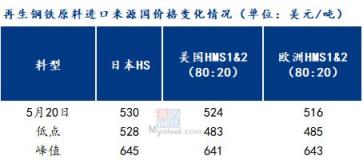 進(jìn)入5月,日本東京制鐵廢鋼采購價格已經(jīng)歷了六連跌,5月份的關(guān)東鐵源出口招標(biāo)會,又再現(xiàn)流標(biāo)局面。據(jù)調(diào)研,截止5月20日,日本HS廢鋼到岸價在530美元/噸左右,距離4月初的高點(diǎn)大幅下降115美元/噸,近乎已回到年內(nèi)低點(diǎn);截止5月20日,美國HMS1:2(80:20)廢鋼到岸價在524美元/噸,距離4月份的高點(diǎn)跌117美元/噸,離年內(nèi)低點(diǎn)約41美元/噸;截止5月20日,歐洲HMS1:2(80:20)廢鋼到岸價在516美元/噸,距離4月份的高點(diǎn)跌127美元/噸,離年內(nèi)低點(diǎn)約31美元/噸;當(dāng)前歐美再生鋼鐵原料價格已接近年內(nèi)低點(diǎn),日本再生鋼鐵原料的價格更是已回到了年初水平。