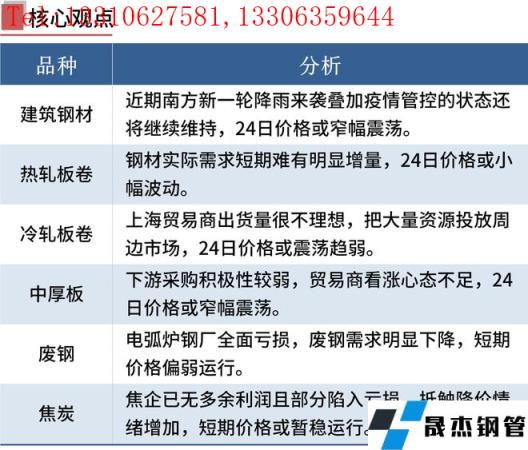 建筑厚壁無縫鋼管:5月23日,全國31個主要城市20mm三級抗震螺紋鋼均價4839元/噸,較上個交易日下跌10元/噸。短期來看,目前市場供應(yīng)端同比持續(xù)低位,同時近期南方新一輪降雨來襲疊加疫情管控的狀態(tài)還將繼續(xù)維持,消費難有好轉(zhuǎn)預期。目前市場仍然處于供需雙弱的格局。短期市場關(guān)注點仍在于消費能否有效恢復以及雨季對于消費的影響,因此預計24日國內(nèi)建筑厚壁無縫鋼管現(xiàn)貨價格窄幅震蕩為主。