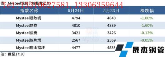 ◎5月24日,唐山遷安地區(qū)普方坯資源出廠含稅累計下調70,報4470元。