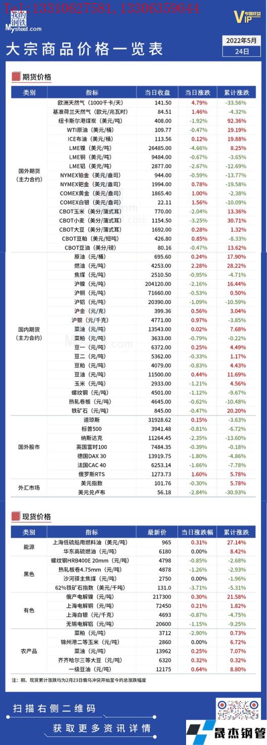 免責聲明:本網(wǎng)站(山東聊城晟杰無縫鋼管廠www.frdimp.com)刊載的“俄烏局勢丨大宗商品價格一覽表(5月24日)”等均源于網(wǎng)絡,版權歸原作者所有,且僅代表原作者觀點,本文所載信息僅供參考。轉載僅為學習與交流之目的,如無意中侵犯您的合法權益,請及時聯(lián)系刪除。本網(wǎng)站刊登此篇文章并不意味著本站贊同其觀點或證實其內容的真實性,我們不對其科學性、嚴肅性等作任何形式的保證。如果侵犯了您的版權,請盡快聯(lián)系我們予以撤銷,謝謝合作!