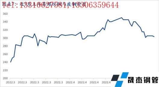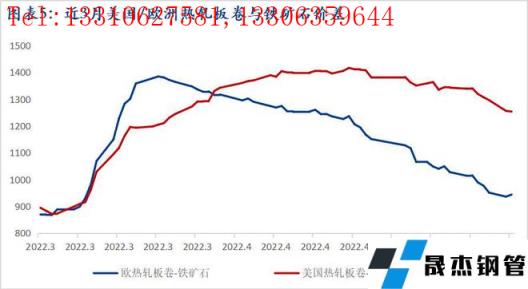 雖然4月上旬全球成品鋼價格延續(xù)上漲,致使北美、歐洲、土耳其等主要產(chǎn)鋼國日均產(chǎn)量小幅上漲(3-5%),但4月下旬成品鋼跌幅明顯大于原材料尤其是鐵礦石下跌幅度。表5為近三月美國和歐洲熱卷價格與鐵礦石價差,該價差僅取主流價格且未經(jīng)嚴格計算不代表生產(chǎn)成本,僅作利潤變化的趨勢參考??梢姎W洲熱軋板卷與鐵礦石價差在3月中下旬達到高點后,在整個4、5月份連續(xù)下降,相比之下該價差在美國的降幅相對較小。