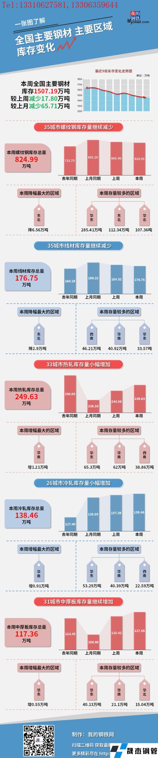 本周,全國(guó)主要厚壁無(wú)縫鋼管社會(huì)庫(kù)存1507.19萬(wàn)噸,較上周減少17.8萬(wàn)噸,較上月減少65.71萬(wàn)噸;螺紋鋼庫(kù)存總量824.99萬(wàn)噸。