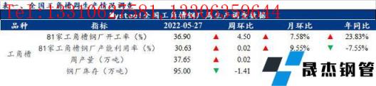 27日檢測(cè)的全國(guó)81家工角槽無(wú)縫厚壁鋼管廠家企業(yè)中,本周開(kāi)工率36.9%,較上周(32.4%)增加4.4%,產(chǎn)能利用率為30.63%,較上周(30.61%)增加0.02%。本周全國(guó)工角槽產(chǎn)量37.65萬(wàn)噸,較上周(37.63)增加0.02萬(wàn)噸。