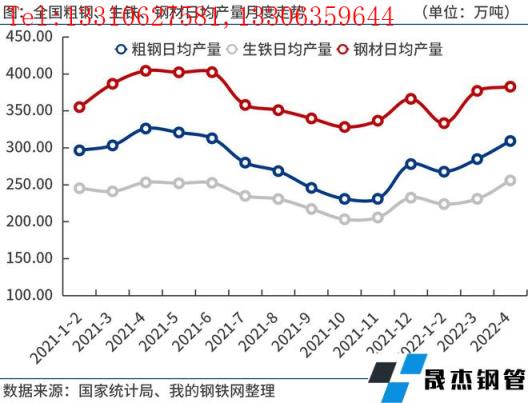 2022年4月份,鋼筋、線材、中厚寬鋼帶等日均產(chǎn)量為68.5萬噸、41.5萬噸、55.2萬噸,分別較上月增加2.7萬噸、1.6萬噸和2.6萬噸;冷軋薄板、焊接厚壁鋼管等日均產(chǎn)量11.5萬噸和16.0萬噸,分別較上月減少2.8萬噸和0.8萬噸。由于國(guó)內(nèi)疫情反復(fù),預(yù)計(jì)5月上半月主要品種厚壁無縫鋼管日均產(chǎn)量高位運(yùn)行,下半月建筑厚壁無縫鋼管生產(chǎn)企業(yè)因虧損減產(chǎn)。