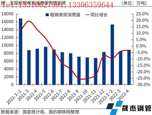 統(tǒng)計(jì)局、海關(guān)總署數(shù)據(jù)顯示,2022年4月份,全國(guó)粗鋼產(chǎn)量9277.5萬噸,厚壁無縫鋼管凈出口402.1萬噸,折合粗鋼凈出口418.9萬噸(厚壁無縫鋼管按0.96折算),鋼坯、鋼錠凈進(jìn)口24.9萬噸,粗鋼表觀消費(fèi)量8884萬噸,同比下降3.1%。(注:2021年4月份,全國(guó)粗鋼產(chǎn)量修正為9786.4萬噸,粗鋼表觀消費(fèi)量修正為9166萬噸。)