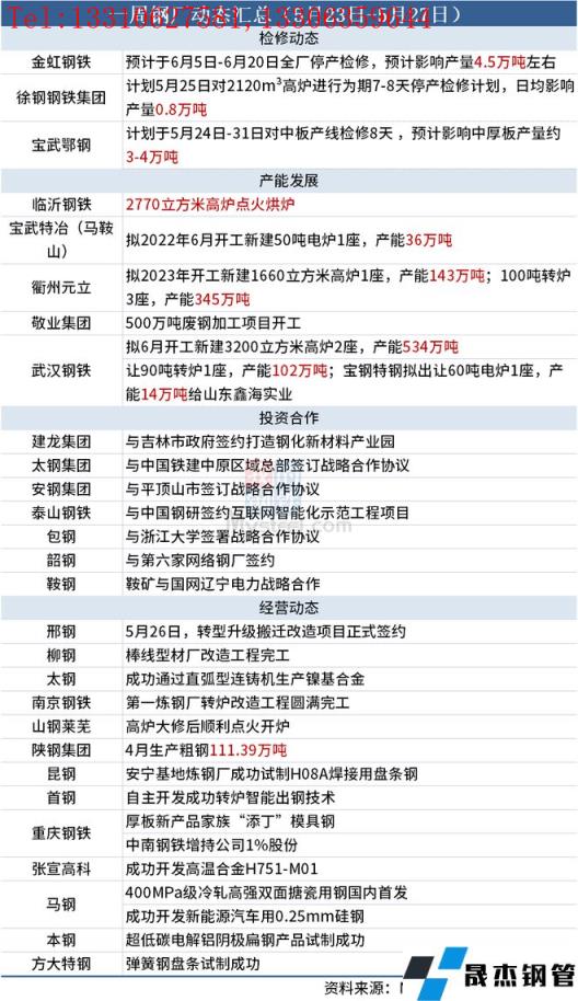 據(jù)不完全統(tǒng)計,本周(5月23日-5月27日)有3家無縫厚壁鋼管廠家發(fā)布檢修計劃,具體如下: