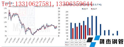 無縫厚壁鋼管廠家利潤(rùn)方面,截至5月27日,調(diào)研河北螺紋噸鋼毛利-108元/噸,環(huán)比上月降低212元/噸,江蘇螺紋噸鋼毛利10元/噸,環(huán)比上月降低164元/噸。河北區(qū)域噸鋼毛利持續(xù)下跌,目前鋼價(jià)已經(jīng)跌破無縫厚壁鋼管廠家生產(chǎn)成本。江蘇區(qū)域噸鋼毛利現(xiàn)處于盈虧線附近,無縫厚壁鋼管廠家利潤(rùn)十分微薄。