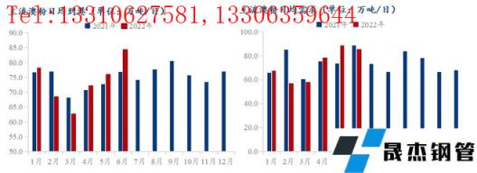 但隨著疫情影響的消退,按正常生產(chǎn)節(jié)奏上高爐鐵水產(chǎn)量月環(huán)比依舊出現(xiàn)增量,因此生產(chǎn)日耗增加,同時(shí)為保證廠內(nèi)正常生產(chǎn),在疫情常態(tài)化無縫厚壁鋼管廠家提貨需求也不斷增加,廠內(nèi)庫存維持近兩月的相對(duì)高位。