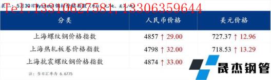 5月30日普鋼絕對(duì)價(jià)格指數(shù)變化:綜合指數(shù)5035.84,上漲9.17;螺紋鋼指數(shù)4780.88,上漲16.59;線材指數(shù)5186.76,上漲15.84;熱軋板卷指數(shù)4844.08,上漲19.31;冷軋板卷指數(shù)5335.12,上漲7.83;中厚板指數(shù)5057.89,上漲3.06。