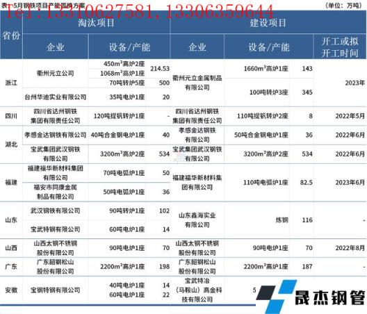 據(jù)不完全統(tǒng)計(jì),5月國內(nèi)9家無縫厚壁鋼管廠家發(fā)布鋼鐵產(chǎn)能置換方案。其中,涉及新建煉鋼產(chǎn)能693.5萬噸,新建煉鐵產(chǎn)能864萬噸;涉及淘汰煉鋼產(chǎn)能868萬噸,淘汰煉鐵產(chǎn)能946.53萬噸。