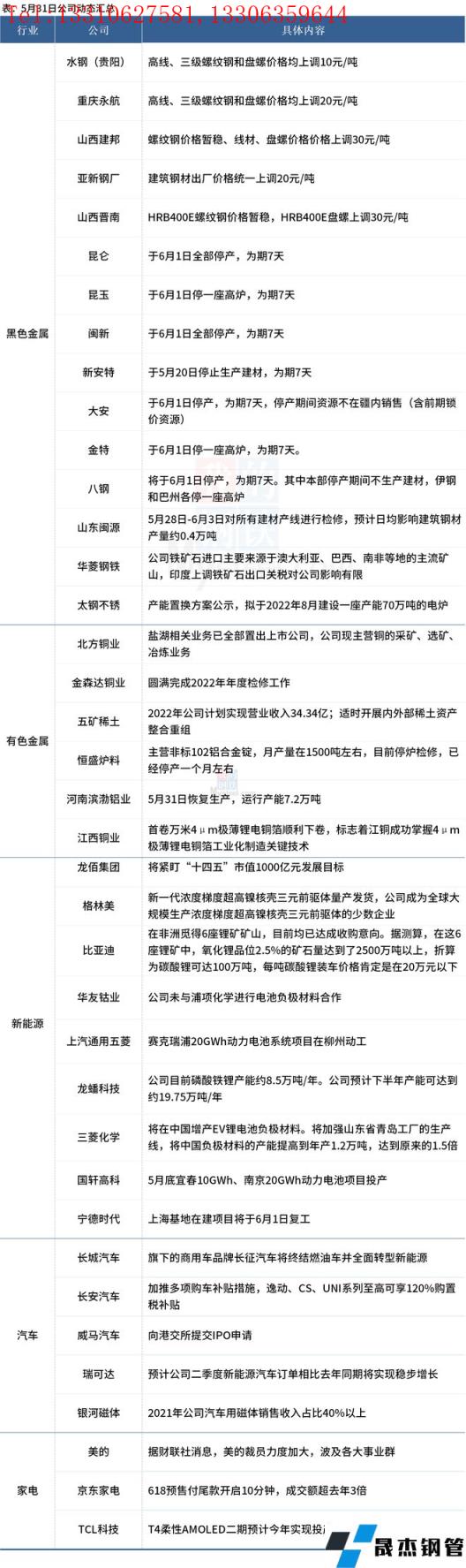 寧德時(shí)代上?;卦诮?xiàng)目將于6月1日復(fù)工;五礦稀土2022年公司計(jì)劃實(shí)現(xiàn)營業(yè)收入34.34億;欣旺達(dá)擬投入23億元建設(shè)年產(chǎn)3.1億只高性能圓柱鋰離子電池項(xiàng)目;龍佰集團(tuán)將緊盯“十四五”市值1000億元發(fā)展目標(biāo)。具體情況如下: