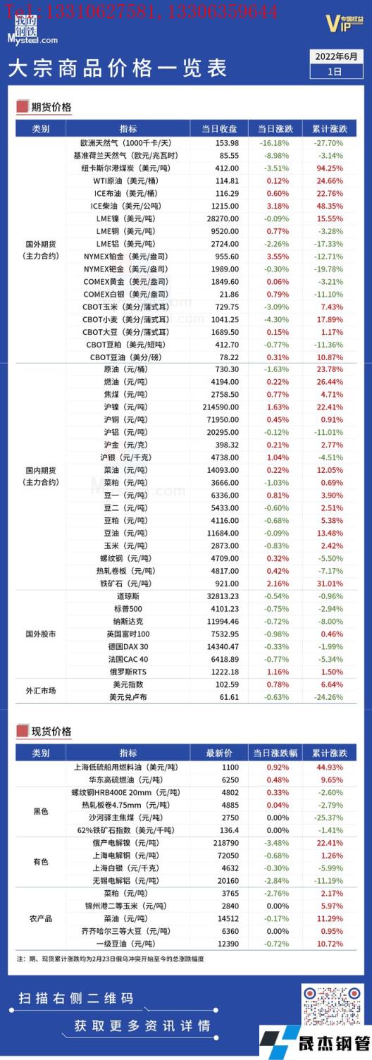 免責聲明:本網站(山東聊城晟杰無縫鋼管廠www.frdimp.com)刊載的“俄烏局勢丨大宗商品價格一覽表(6月1日)”等均源于網絡,版權歸原作者所有,且僅代表原作者觀點,本文所載信息僅供參考。轉載僅為學習與交流之目的,如無意中侵犯您的合法權益,請及時聯(lián)系刪除。本網站刊登此篇文章并不意味著本站贊同其觀點或證實其內容的真實性,我們不對其科學性、嚴肅性等作任何形式的保證。如果侵犯了您的版權,請盡快聯(lián)系我們予以撤銷,謝謝合作!