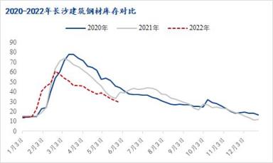 據(jù)統(tǒng)計,截止6月2日長沙建筑厚壁無縫鋼管庫存總量為29.12萬噸,其中螺紋鋼占比74%,線盤占比26%。該庫存水平較去年同期低10.58萬噸。由于浙江、江蘇、湖北等外省厚壁無縫鋼管對長沙投放量明顯減少,因此長沙庫存呈現(xiàn)持續(xù)下降趨勢。