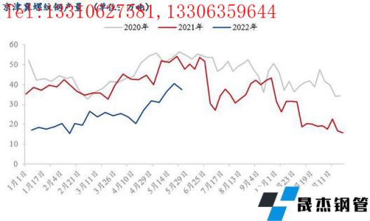 從上圖可以看出,5月份京津冀建筑厚壁無(wú)縫鋼管無(wú)縫厚壁鋼管廠家的螺紋鋼產(chǎn)量緩慢提升,雖然中下旬產(chǎn)量有所下降,但是仍處于相對(duì)高位,不過(guò)低于往年同期水平。截至5月底,螺紋鋼周產(chǎn)量為37.51萬(wàn)噸,產(chǎn)量月環(huán)比提升17.6%,較去年同期低21.3%。本月除承鋼受當(dāng)?shù)匾咔橛绊?,原料運(yùn)輸受阻,高爐有檢修情況,導(dǎo)致建材產(chǎn)量有所下降外,其他無(wú)縫厚壁鋼管廠家如敬業(yè)、東華、東海特鋼、樂(lè)鋼等月產(chǎn)量均有所提升,且隨著運(yùn)輸情況緩解,無(wú)縫厚壁鋼管廠家廠內(nèi)資源陸續(xù)向周邊市場(chǎng)分流。從調(diào)研情況來(lái)看,當(dāng)前無(wú)縫厚壁鋼管廠家螺紋鋼生產(chǎn)成本在4500-4600元/噸,雖然利潤(rùn)微薄,但是6月份也無(wú)檢修計(jì)劃,且產(chǎn)量或較5月份有提升。
