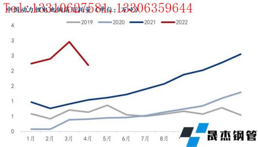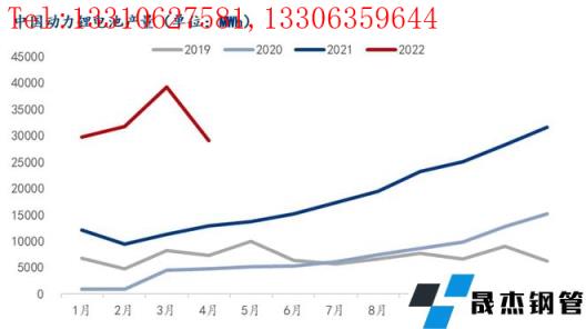 2022年前4個月中國動力鋰電池產(chǎn)量為13GWh,同比增速超過180%,其中3月再度創(chuàng)歷史新高,動力電池類鋰電銅箔需求量接近10萬噸。
