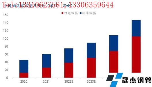 萬噸,儲能類鋰電池用銅箔量約為3萬噸。2021年鋰電銅箔總需求為26萬噸,較2020年翻一番。