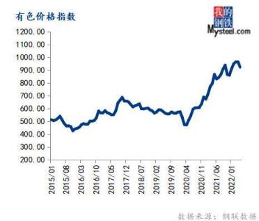 5月份有色金屬價格指數(shù)為922.09,環(huán)比下跌4.30%,同比上漲6.48%。
