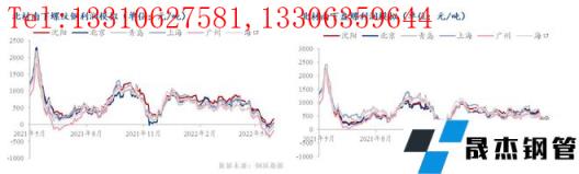 從價格變化來看,華南區(qū)域受汛期影響、價格表現(xiàn)相對偏弱,上海受疫情大規(guī)模封控影響、資源流動性低,在價格下跌階段表現(xiàn)出了較強的抗跌性,北京則因為部分區(qū)域疫情封控影響,資源出現(xiàn)了區(qū)域內(nèi)不平衡流動,導(dǎo)致可流動資源跟隨性下跌后帶動市場價格整體趨弱運行。但不管從何角度來看,5月份無縫厚壁鋼管廠家利潤或受售價大幅下跌影響出現(xiàn)較大幅度萎縮。
