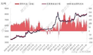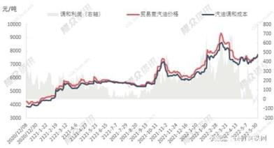 反觀柴油,依據(jù)華東江里貿(mào)易商 柴油價格及其原料價格走勢進行監(jiān)測,2022年5月華東成品柴油原料價格同比出現(xiàn)1.5-2.5%的漲幅。在5月夏收帶動下,成品柴油價格同步上漲,致使柴油成本利潤均出現(xiàn)提升,但進入6月份,隨著南方進入梅雨季節(jié),需求逐步回落,柴油理論利潤或相應收窄。見上圖3。