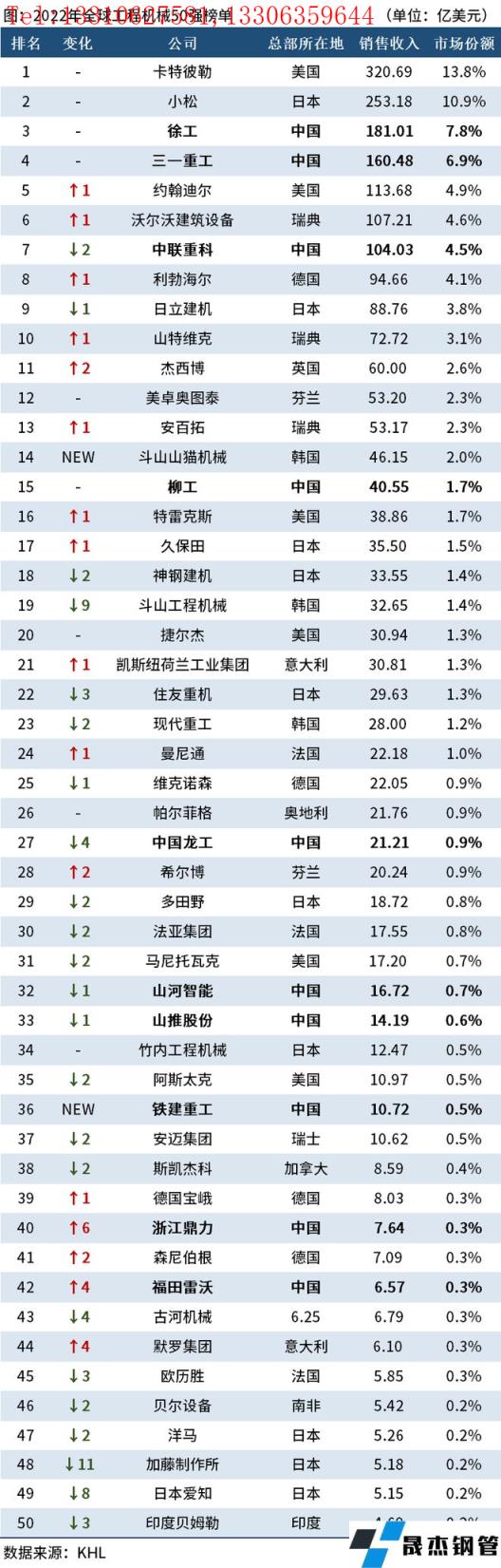 免責聲明:本網(wǎng)站(山東聊城晟杰無縫鋼管廠www.frdimp.com)刊載的“2022全球工程機械50強榜單出爐,企業(yè)銷售額增超20%”等均源于網(wǎng)絡,版權歸原作者所有,且僅代表原作者觀點,本文所載信息僅供參考。轉(zhuǎn)載僅為學習與交流之目的,如無意中侵犯您的合法權益,請及時聯(lián)系刪除。本網(wǎng)站刊登此篇文章并不意味著本站贊同其觀點或證實其內(nèi)容的真實性,我們不對其科學性、嚴肅性等作任何形式的保證。如果侵犯了您的版權,請盡快聯(lián)系我們予以撤銷,謝謝合作!