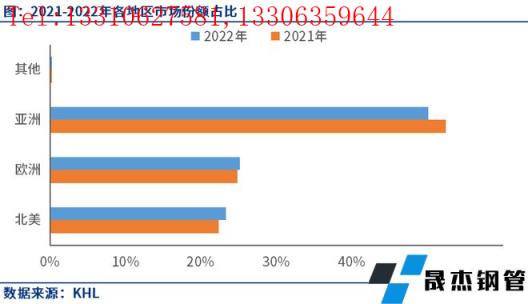 從全球各地區(qū)來看,2022年北美和歐洲市場份額占比均有不同程度提升。亞洲市場份額下降,從52.4%降至50.1%,下降2.3個百分點。