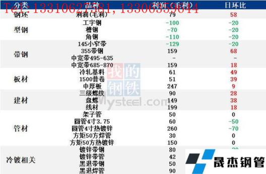 表:6月8日唐山鋼市主要品種利潤一覽(單位:元/噸)