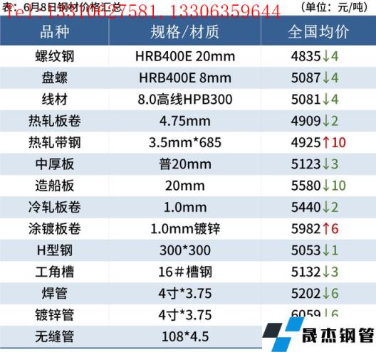 6月8日,國內(nèi)厚壁無縫鋼管市場小幅下跌為主,唐山鋼坯出廠價(jià)格漲20報(bào)4520元/噸。成交方面,午后隨著期螺上行,市場信心恢復(fù),成交活躍度有所增加,全天成交較7日小幅放量。