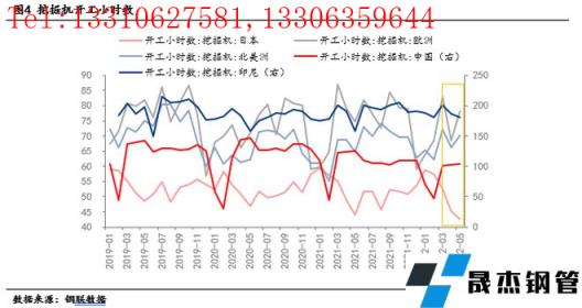 4月挖掘機(jī)出口銷量8445臺(tái),同比增長(zhǎng)64%,增幅較去年收窄,目前出口量占到挖掘機(jī)總銷量的40.95%,較去年同期增加22.03個(gè)百分點(diǎn),出口對(duì)挖掘機(jī)銷量貢獻(xiàn)明顯增加。但分析來看,未來挖掘機(jī)出口銷量增長(zhǎng)空間收窄,主要原因包括以下幾個(gè)方面:1、中國(guó)作為制造業(yè)大國(guó),在去年疫情修復(fù)后為全球工業(yè)產(chǎn)品供應(yīng)發(fā)揮了重要作用,目前全球制造業(yè)供應(yīng)鏈逐漸恢復(fù)正常,對(duì)中國(guó)進(jìn)口需求下降。2、海外市場(chǎng)需求轉(zhuǎn)弱,從小松挖掘機(jī)公布的各國(guó)挖掘機(jī)開工小時(shí)數(shù)來看,5月日本、印尼開工小時(shí)數(shù)均呈現(xiàn)環(huán)比下滑趨勢(shì),北半球開始進(jìn)入施工淡季,對(duì)挖掘機(jī)需求減弱。