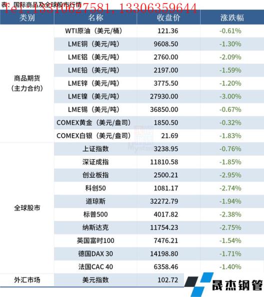免責(zé)聲明:本網(wǎng)站(山東聊城晟杰無縫鋼管廠www.frdimp.com)刊載的“2022年06月10日早讀:全球大宗商品價(jià)格普跌,電爐無縫鋼管廠家虧損超百元”等均源于網(wǎng)絡(luò),版權(quán)歸原作者所有,且僅代表原作者觀點(diǎn),本文所載信息僅供參考。轉(zhuǎn)載僅為學(xué)習(xí)與交流之目的,如無意中侵犯您的合法權(quán)益,請(qǐng)及時(shí)聯(lián)系刪除。本網(wǎng)站刊登此篇文章并不意味著本站贊同其觀點(diǎn)或證實(shí)其內(nèi)容的真實(shí)性,我們不對(duì)其科學(xué)性、嚴(yán)肅性等作任何形式的保證。如果侵犯了您的版權(quán),請(qǐng)盡快聯(lián)系我們予以撤銷,謝謝合作!