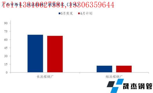 1、6月份廣西地區(qū)建筑材省內長流程無縫厚壁鋼管廠家計劃供應量共計66.8萬噸,環(huán)比下降2.12萬噸,降幅為3.08%;短流程無縫厚壁鋼管廠家到貨量為12.4萬噸,環(huán)比增加0.2萬噸,增幅為1.64%。