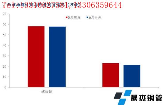2、6月份廣西地區(qū)建材計劃供應量79.2萬噸,其中螺紋鋼計劃約57.9萬噸,環(huán)比下降0.3萬噸,降幅0.3%;線盤到貨量計劃約21.3萬噸,環(huán)比下降1.8萬噸,降幅為7.79%。